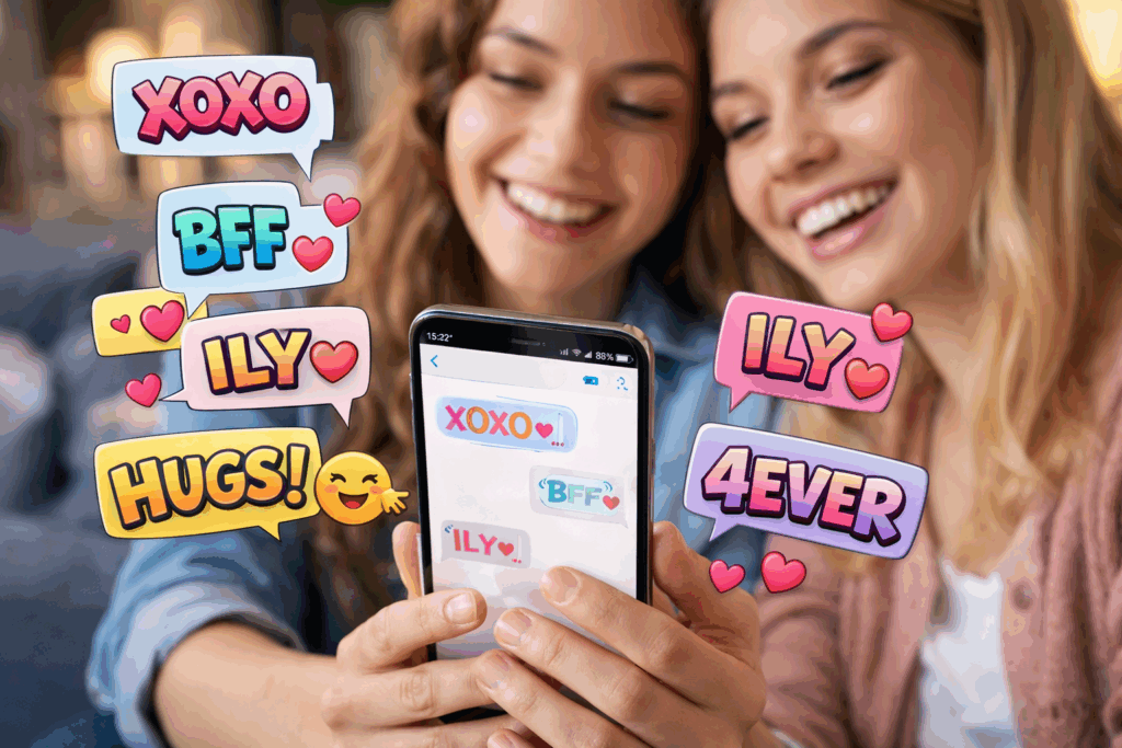 英語圏のカップルや友人同士のチャットには、短くても想いの強さや親しみを込めた愛の略語やメッセージがたくさん登場します。たとえば「LY(Love You)」や「ILY(I Love You)」はとても定番。「MY(Miss You)」や「YMT(You Mean Everything To Me)」も使いやすいです。SNSやメールでは「XOXO」や「HUGS”, “KISS」などシンプルな単語を組み合わせて感情をストレートに表現します。「4EVA(Forever)」や「BFF(Best Friends Forever)」は友情を表す時にも最適です。アルファベットだけで感情を表現できるのがこうした英語スラングの醍醐味ですね。投稿やチャットの最後にこうした略語をさらりと添えてみると、相手の心をぐっと惹きつけることができます。恋愛だけでなく、家族や大切な友達とより心の距離を縮めたいときにもぜひ活用してみてください。